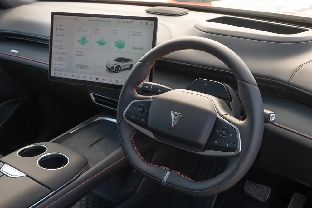 160kw is good for a 0-100 of 7.9 seconds. Around town, Deepal S07 is blissfully quiet with the gongs less frequent. The sound deadening does a good job of making city chores a zen-like experience.