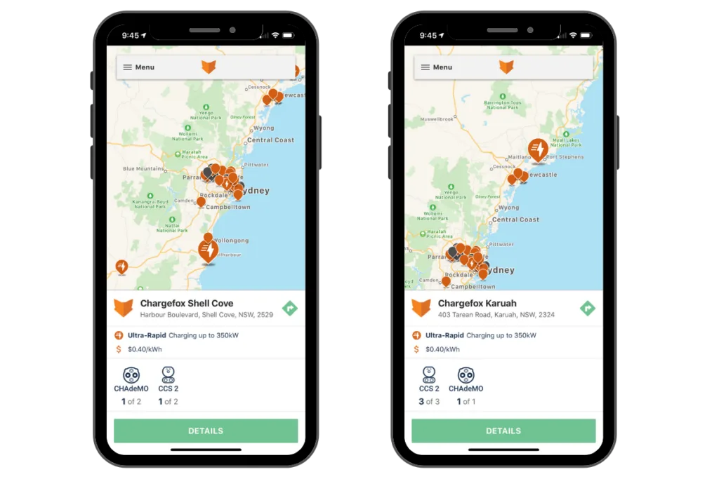 The Chargefox app also lists hundreds of other sites between 7kw and 350kw, with prices varying from free, to 70c.