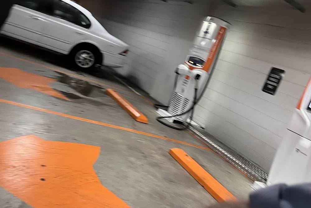 We find a no-cost 50kw outlet at Dan Murphy’s in Bateman’s Bay, that is actually working. Down the road there is a 7kw outlet for house guests at The Isla in Batehaven. This “resort” looks like a 60’s motel throwback with new railings and a paint job, and charges 60c p/kwh for their 7kw trickle charging.