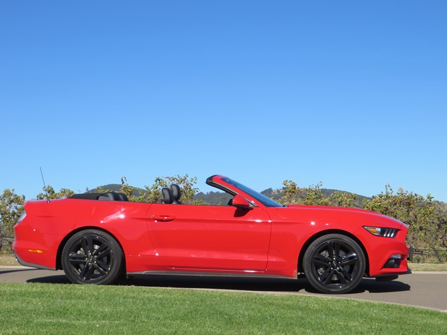 It’s been the subject of much speculation and discussion. Unusually for modern convertibles, this one still has a handle on the inside which locks it to the windscreen when deployed. It’s no trouble but you could be in strife at 100kph if you forget to lock the roof to the windscreen. The roof doesn’t have a cover over the stowage compartment like other convertibles. Instead, Mustang uses the front 30cms of roof which is a hard section covered in fabric. When opening, the roof simply folds back on itself leaving the front section exposed on the rear deck between the rear seats and the boot. It also leaves all the struts exposed. Other brands have fancy bits of plastic with fold and unfold with origami-like precision to form covers. Their rear decks are flat with no holes. To save money, and possibly weight, Ford gives the buyer a couple of plastic bits you can use if you can be bothered. But, you have to schlep round to the boot, get them out, then stand there like a gormless village idiot trying to fit them. I tried, and couldn’t even after half an hour of trying. Then of course, you have to remember to remove them again before you close the roof. It’s just daft, so in the bin with them! Besides, there is nowhere to store them so two plastic parts of about 40cms long, so they spend their time sliding round the boot.