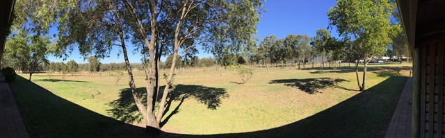 This is a view during the Segway tour of The Hunter Valley Resort from across the lake.