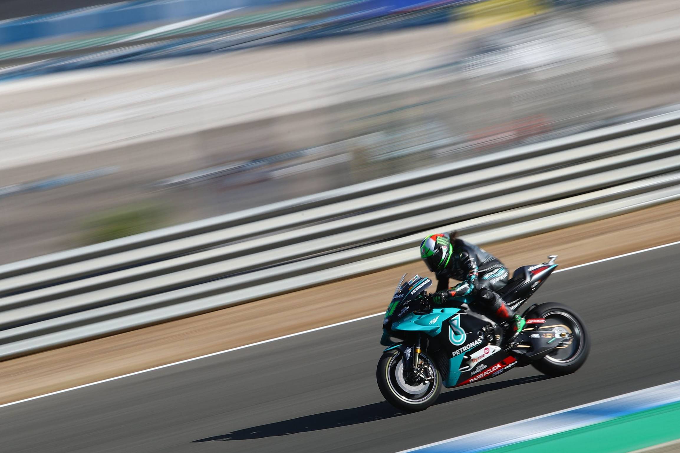 Quartararo started the day by breaking his own lap record – set last weekend – around the 4.4.km Circuito de Jerez – Angel Nieto, posting a 1min 36.643secs lap in the first MotoGP Free Practice session of the day. This saw him finish FP3 second and automatically progress into Q2. The Frenchman was quick to stamp his mark in qualifying and place his Yamaha YZR-M1 at the top of the timings, with a 1min 37.007secs lap. However, he almost lost out to fellow Yamaha rider Maverick Viñales who had lapped faster by a narrow margin on his last lap. Viñales’ lap time was disallowed for exceeding track limits, which meant that Quartararo claimed his second pole position in a row this year and his fourth in the last four MotoGP races.