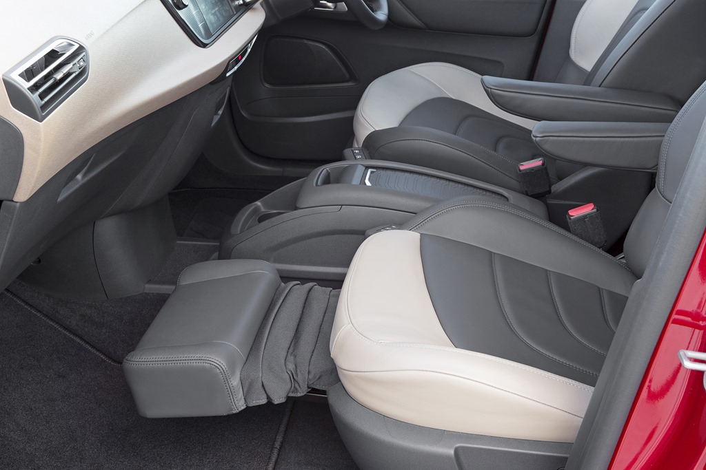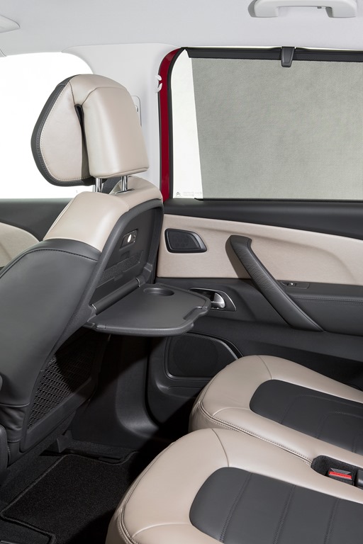 The leather option has comfy massaged and heated front seats with picnic tables for use by the chaps in the 3 individual rear seats. Sorry, the bloke in the centre will have to eat his lunch off his lap because there are only two front seats to hang the picnic tables from.