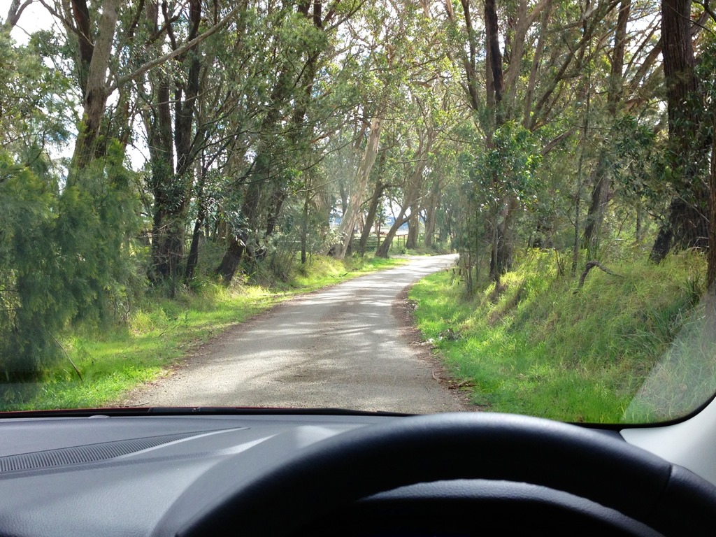 There is something very satisfying about looking in the rearview mirror and seeing a cloud of dust flying up behind you. I was passing a field of the most beautiful green I’ve ever seen and it simply begged me to stop and admire it. Just as I did, an alpaca moseyed along the side of the track, and right up to my window. I had to push her gently out of the way to extricate myself from the Focus, but not before I had grabbed an apple I’d bought for morning tea. It was half eaten but the alpaca didn’t seem to mind. I wandered over to the paddock fence and she followed. I crossed my arms on the top bar and put my chin on top and took in the beauteous view. To my surprise the Alpaca came up beside me and put her head on my shoulder. Who knew they were so unbearably cute? She stayed with me for a little while but it was so cold, even with a thick coat on, so back to the car I went. Needless to say my new friend was most put out as I drove off. I thought she was going to open the passenger’s door and jump in! It was most presumptuous of her. When was the last time an alpaca wandered up to your car window in Sydney? What a magnificent day this was turning into.