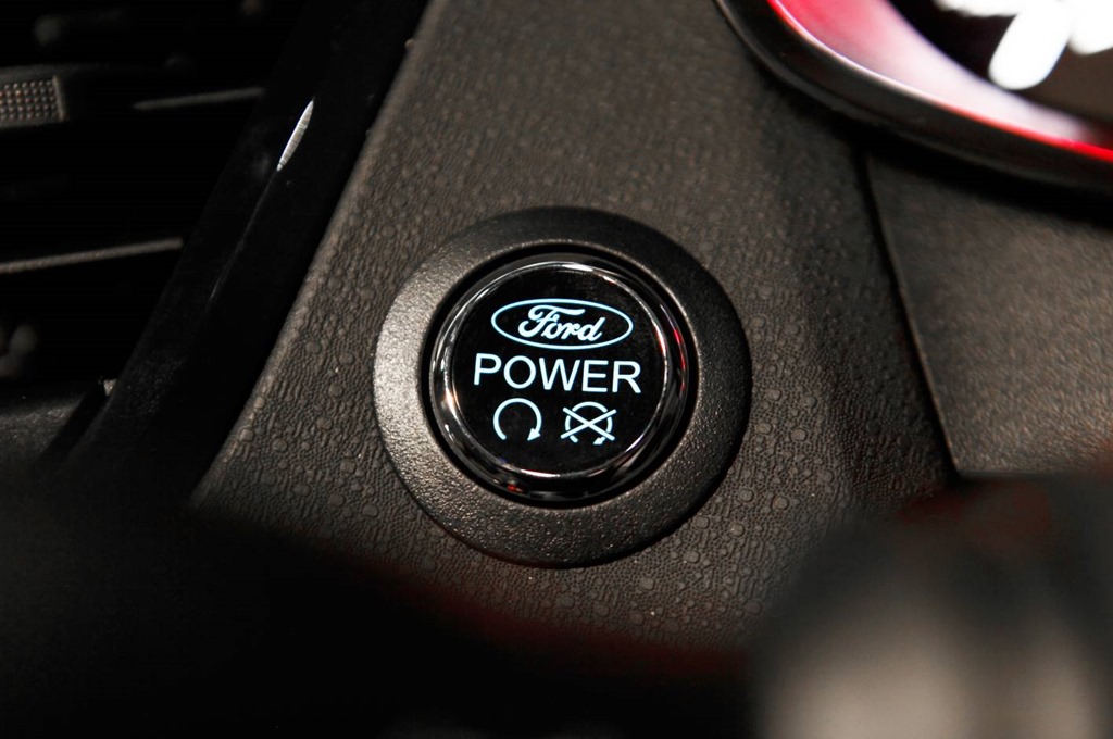 The inside has those hip-hugging Recaro seats up front plus space in the rear for a couple of freeloaders. I normally dread the sight of Recaros but these are firm without feeling like a couple of builders planks have been sewn into the lining. Auto wipers and lights are standard but it is the audio system that’s a bit of a letdown. It’s integrated so very hard to upgrade and the sound, while adequate, is nothing to write home about. It struggles at anything above half volume and there isn’t much bass to speak of. Unlike her bigger sister, the Fiesta hasn’t had the midlife facelift so still has a rather fussy centre console with lots of button. The 4” LCD is so small that you have to rope down Hubble to read it. There is no reverse camera and no sensors in the front. This is a bit odd considering there is smart keyless entry and start so you key stays in your pocket. Of course Fiesta is entry level Ford and therefore the entry level of hot-hatch-dom so there is bound to be a few compromises. I could live with most of that were it not for the fact that the LCD is smaller than my phone.