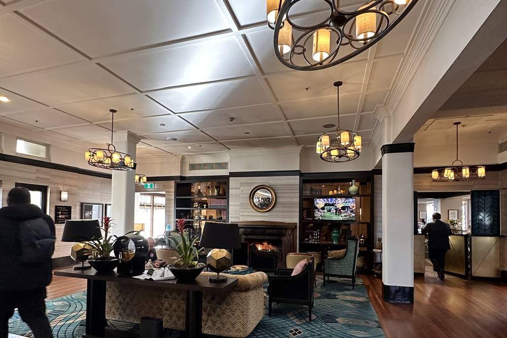 We had cocktails on the second night. We started in the bar adjacent to Chifley’s and the barman was a delight. He, and the young lady at check-in, were the only staff who smiled and seemed like they wanted to be there. We drank our drinks both inside at the fire in the foyer, and our in the attractive courtyard.