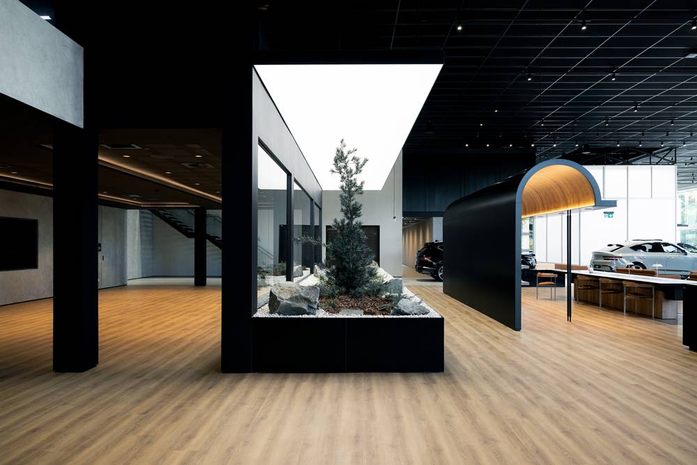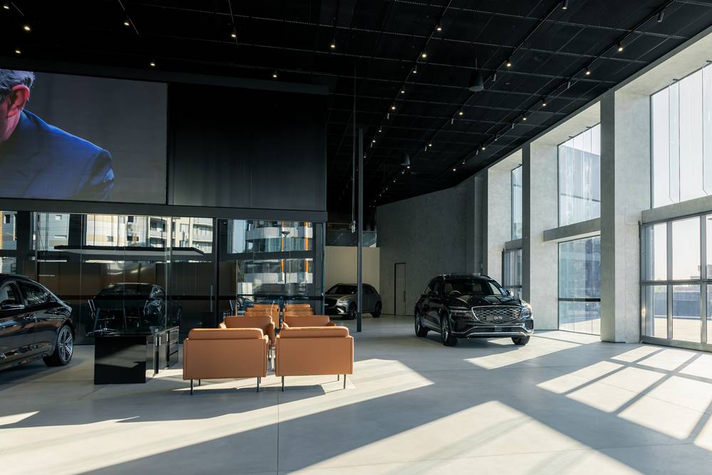 Genesis is clearly gunning for the premiums spaces like those of Audi and BMW. The crisp, state-of-the-art facility follows Genesis’ Korean design philosophy, “Beauty of White Space,” creating a stimulating yet minimalist environment. With indoor space to display up to eight vehicles alongside outdoor exhibits, the facility also has two customer delivery lounges, and some conference spaces.