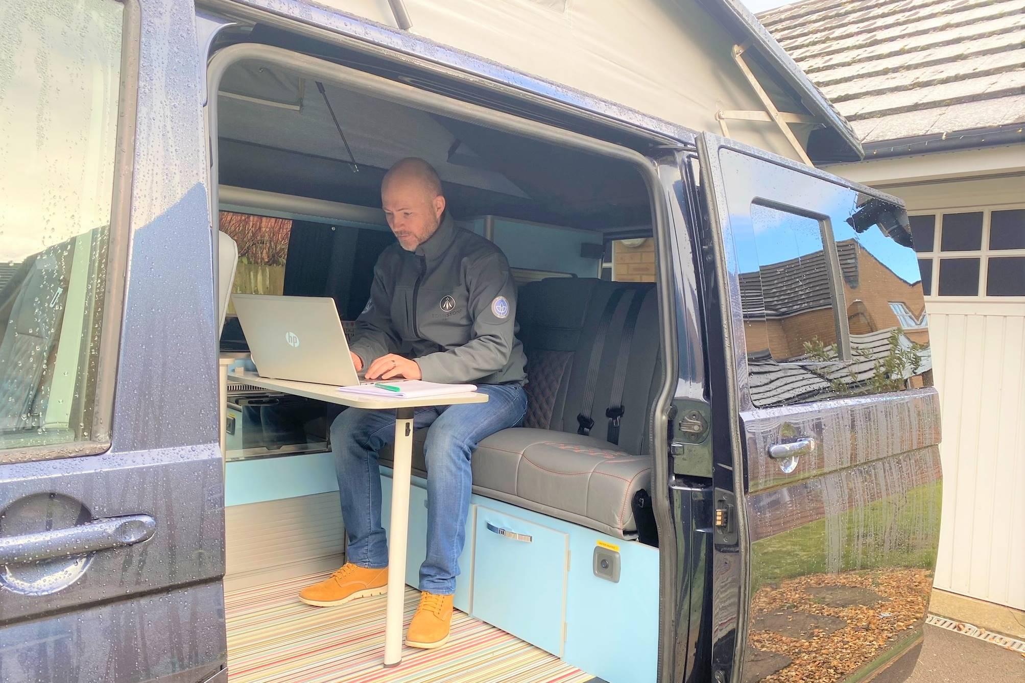 “The pandemic has changed my work pattern, and with all of us at home in the lockdown, my campervan is somewhere I can go to work and escape the distractions at home. I can park it on my drive (or anywhere) and use it as my home office. It’s got all the kit I need to use it as an office, such as USB points and a mains hook-up, plus the bonus of a fridge and cooker. It makes it really easy to work in. Some people build home offices in their garden, but a campervan is way cooler and I get the added benefit of weekend escapism. We live not far from the beach, so it’s great for a day out, and once it’s safe to do so, we’re planning to take it to France and Ireland. We replaced our other car with an electric vehicle, which is great for local trips, but for longer journeys we have the campervan. It was perfect for our trip to Cornwall last summer,” said Chris Edge.