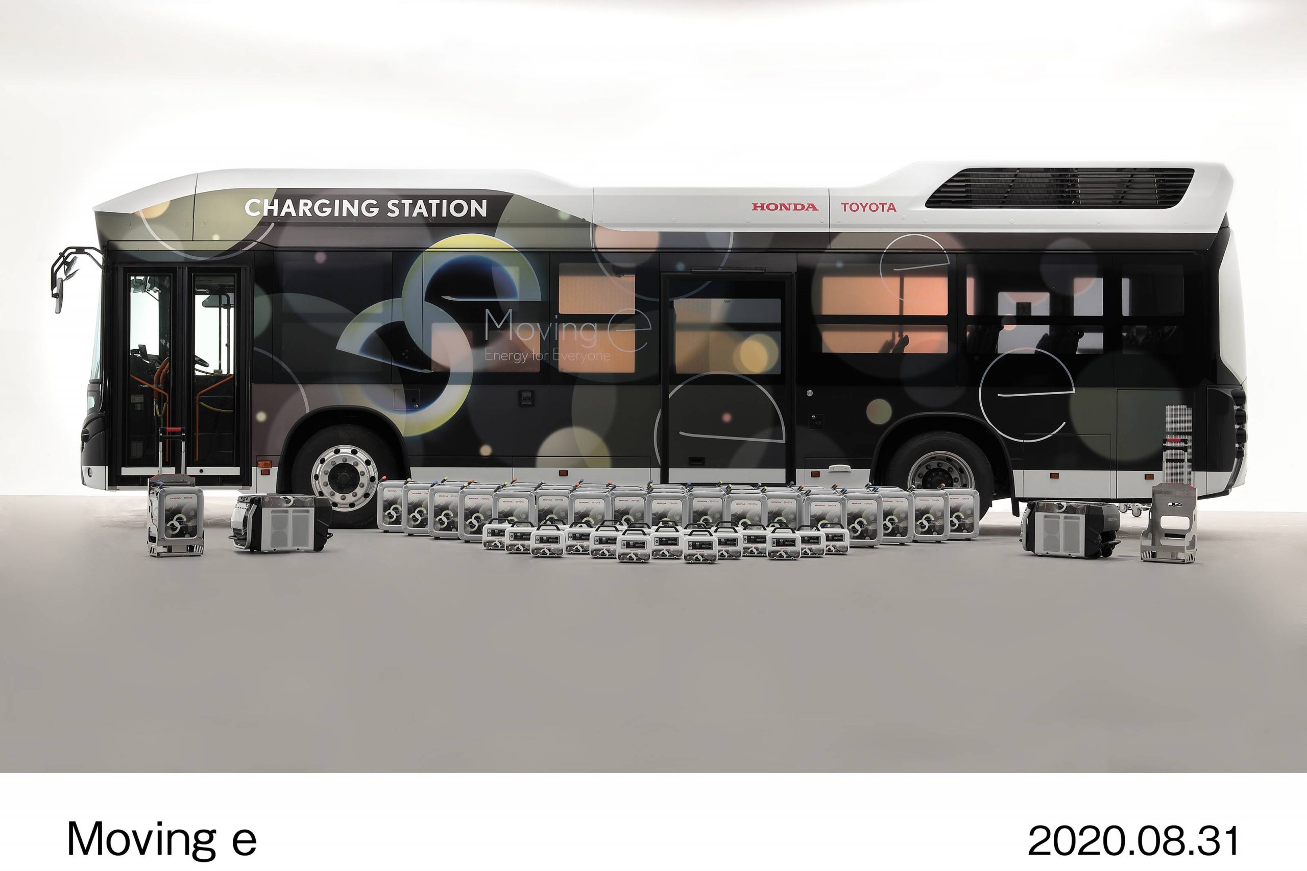 Toyota Motor Corporation (Toyota) and Honda R &D Co., Ltd. (Honda) will create a mobile power generation/output system, Moving e, which consist s of a fuel cell bus that can carry a large amount of hydrogen, portable external power output devices and portable batteries, and will begin demonstration testing of the system’s ability to deliver electricity anytime and anywhere.