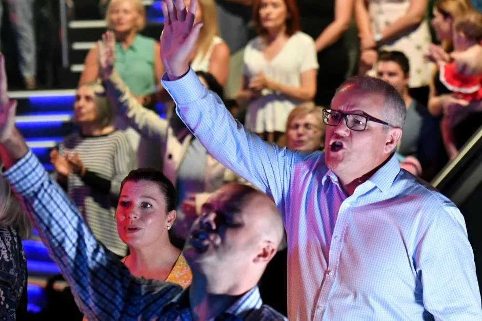 ABOVE: Australian Prime Minister Scott Morrison at Hillsong Church with Disgraced Pastor, Brian Houston