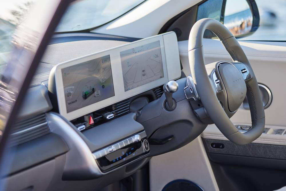 A stab of the “ON” button, brings the dash to life. The 12” infotainment screen is crystal clear, and has all the usual accoutrements. It works smoothly first time every time, and if you can work an iPhone, the IONIQ 5 is a doddle. Every menu makes sense.