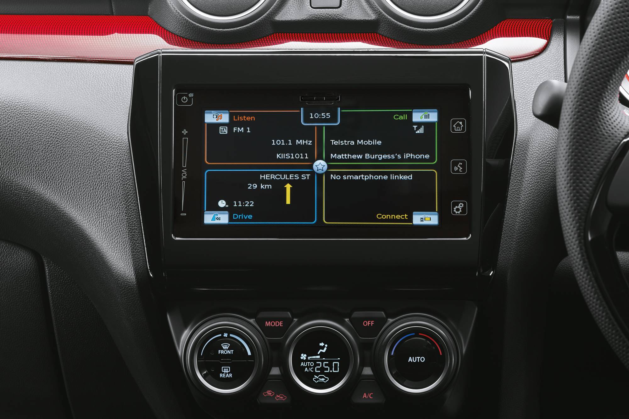 They kept an eye on the purse so punters aren’t penalised. A little extra trim on the dash and doors, some red stitching, and a sports steering wheel, and that’s your lot.