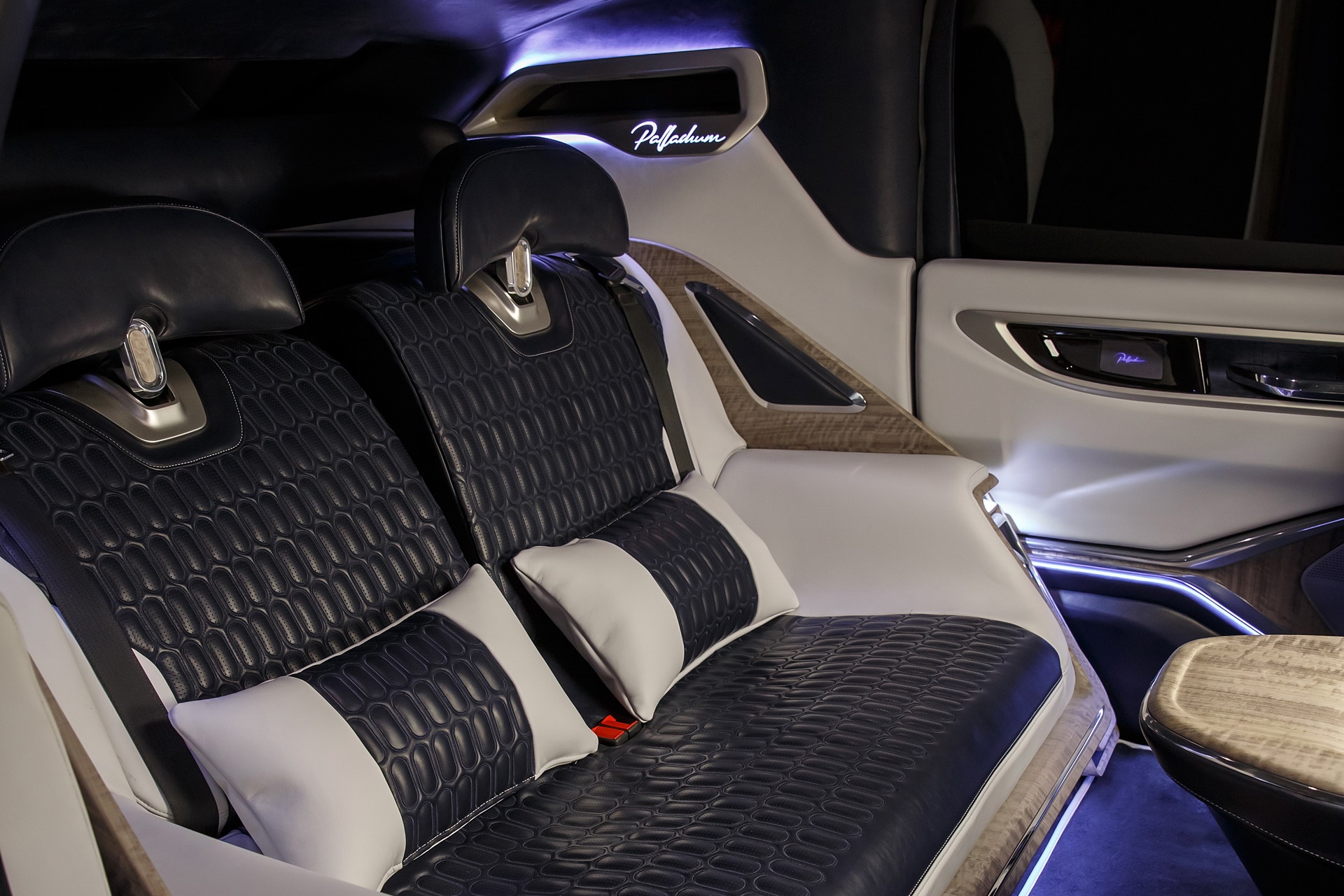 The base model of Palladium is completely covered with Foglizzo leather (ceiling included). Valuable materials and finishing touches elevate every corner of the car to quality levels rarely seen before, underscoring the choices made together with the clients and thanks to the best suppliers and the most talented craftsmen Italy has to offer.