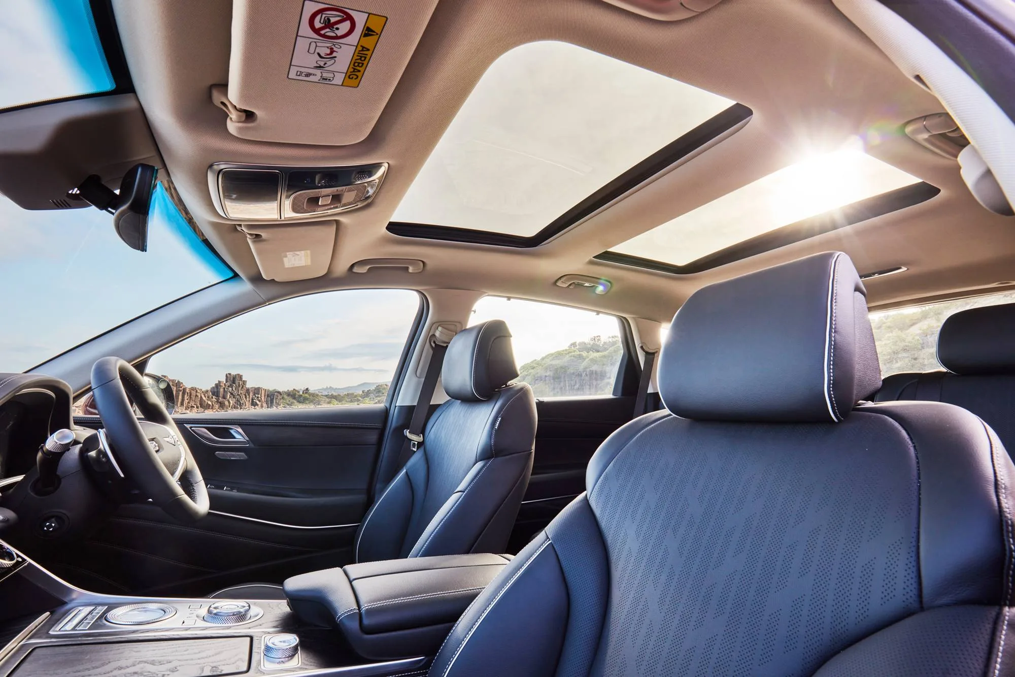 A shield grille, the size of a dance floor, is topped by an Aston Martin-esque emblem. The coincidence is not by accident. Genesis is really going for it.