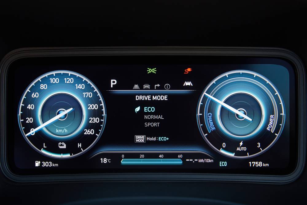 Steering is extremely light, with drive modes adding a bit of pep to performance. On a road trip, you might want to consider Eco, to get a little more pork on your fork. In the bends, the batteries kept Kona firmly on the ground, but there was no doubting that extra weight over the ICE versions, when cornering briskly.