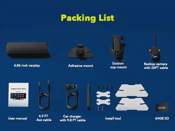 - 86 inch car play screen with a 64GB SD card