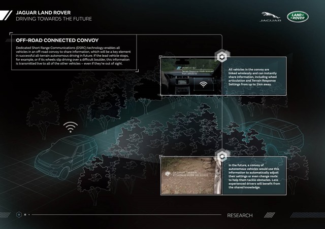 - World-first demonstration of an ‘Off-Road Connected Convoy’ using car-to-car communication to aid progress and enhance the driver experience