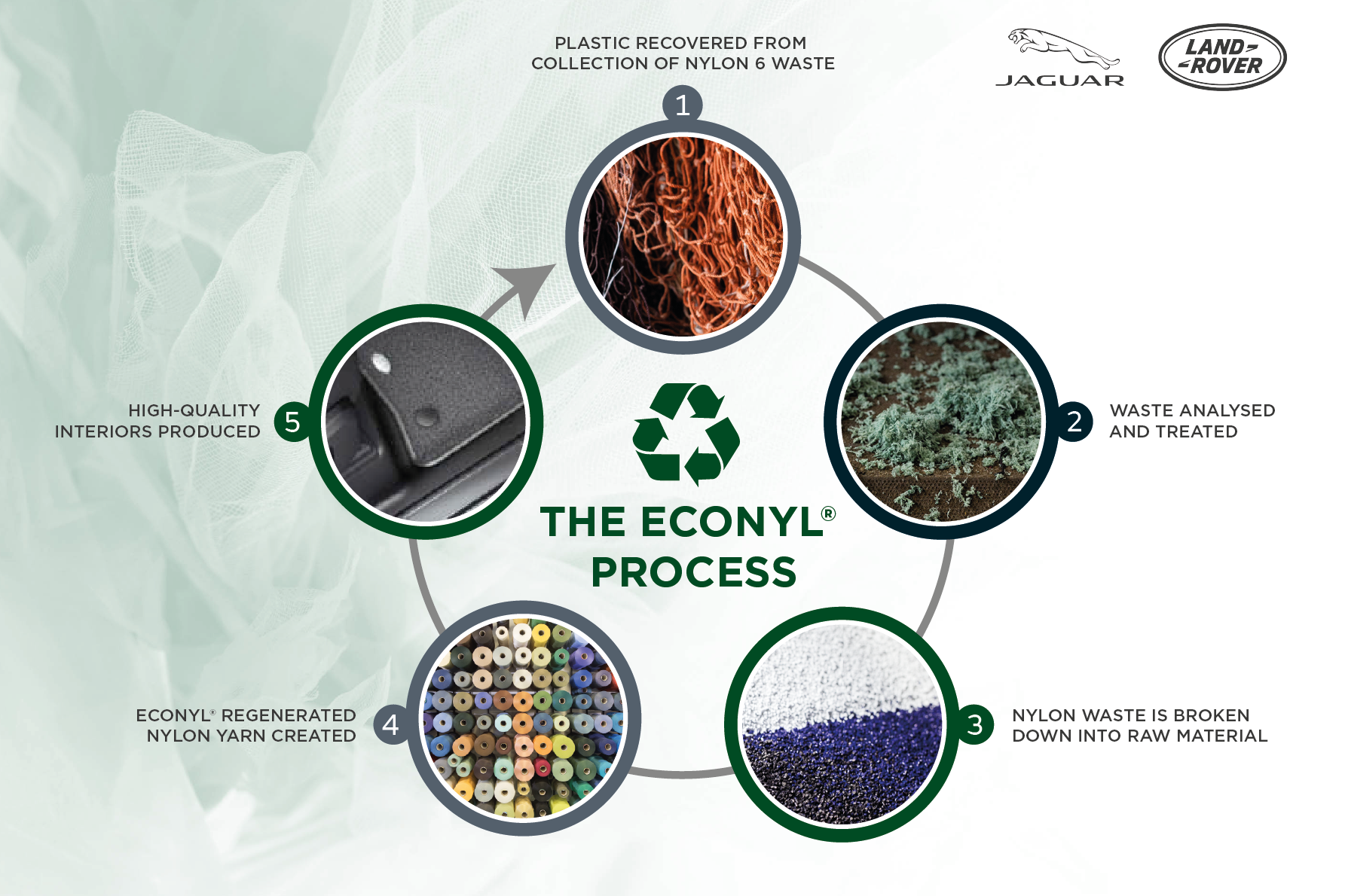 Jaguar Land Rover is working with ECONYL® nylon to develop high-quality interiors made from ocean and landfill waste.