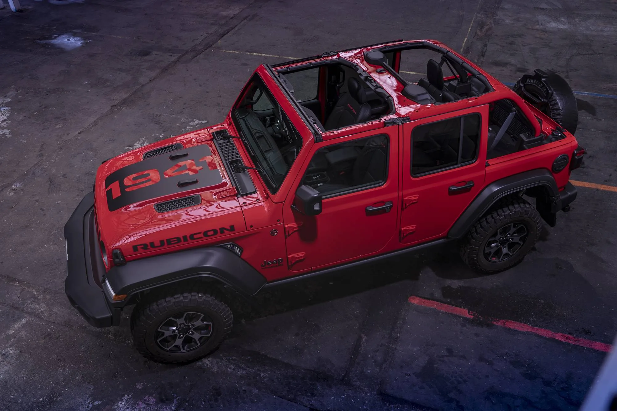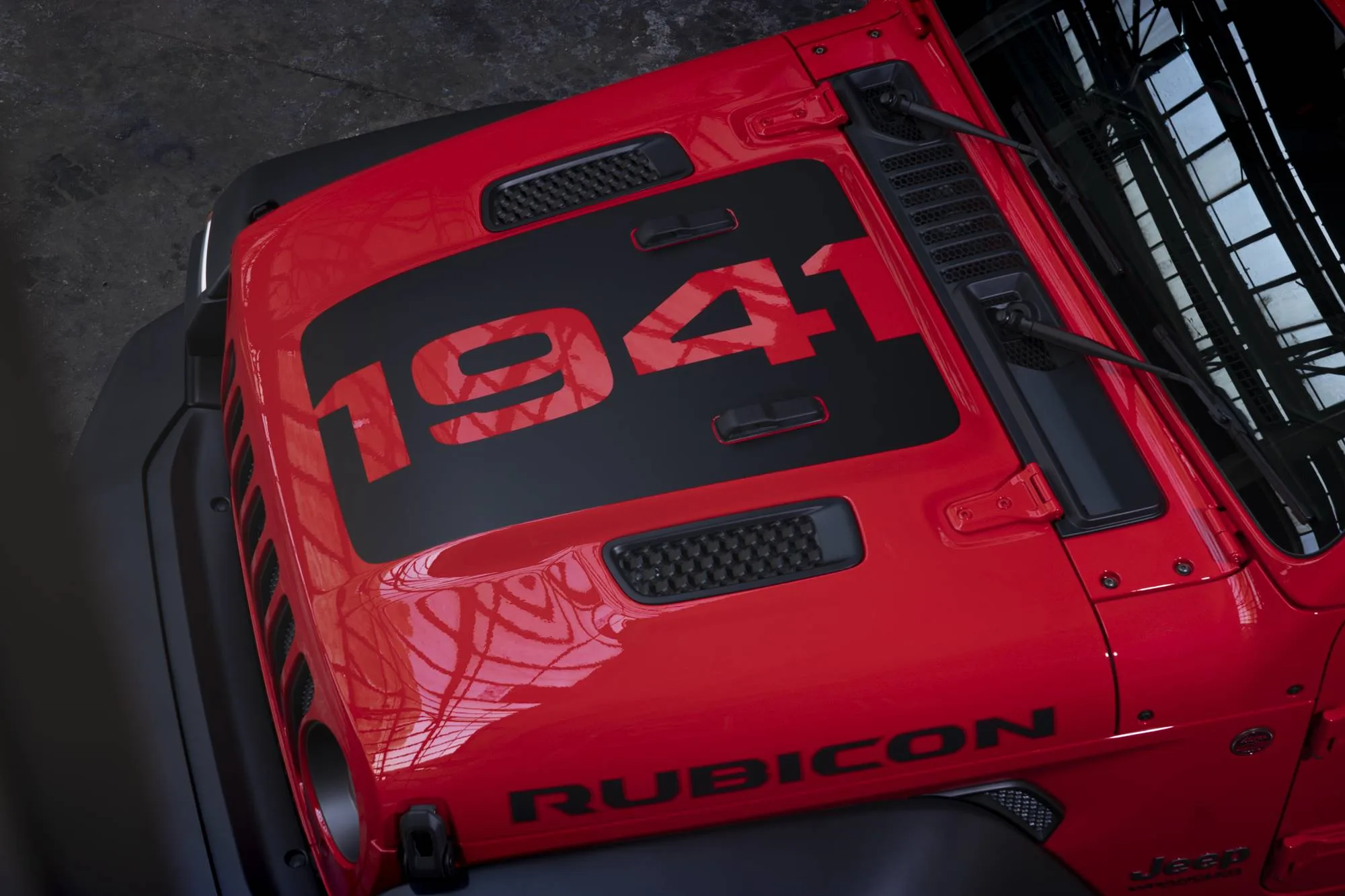 Each Wrangler 1941 has been factory modified with a two-inch suspension lift kit, black door sill guards, front and rear splash guards, black fuel filler door, all-weather mats and 1941 bonnet decal, which sets this model apart from the rest of the Wrangler range. Enhanced rear underbody protection and wheel arch extensions further extend the abilities of the 1941, while the addition of a hardtop headliner enhances the cabin’s ambiance.
