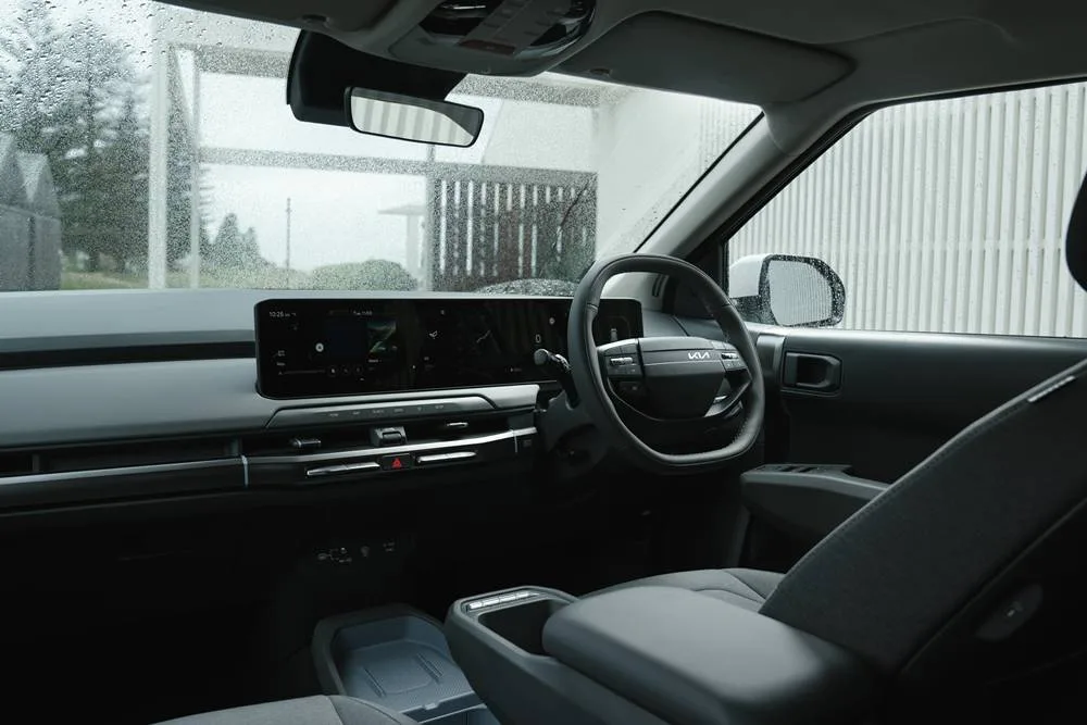 Rear passengers get USB ports embedded in the seatbacks, and while Kia didn’t supply tablet holders, the seat height makes aftermarket mounts viable. Exterior-wise, the EV3 treads the fine line between edgy and oops. It’s less awkward than the Kia Tasman, and far more resolved than the design-disaster that was the K4.