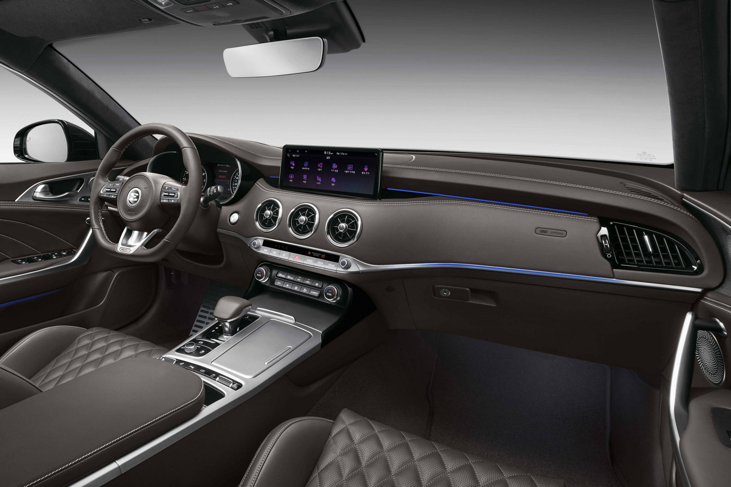 The Stinger is available with new interior colour and material options depending on the market. Customers in Korea can specify a new ‘Dark Brown’ monotone interior with ultra-soft diamond quilted Nappa leather seats. For Kia’s global markets, new choices include Nappa leather upholstery finished in Saturn Black, Red or Beige, alongside existing leather and synthetic leather options. A new Saturn Black option finishes the seats in black suede with contrasting red stitching in a ‘chain’ pattern designed to mimic the links in a watch strap.
