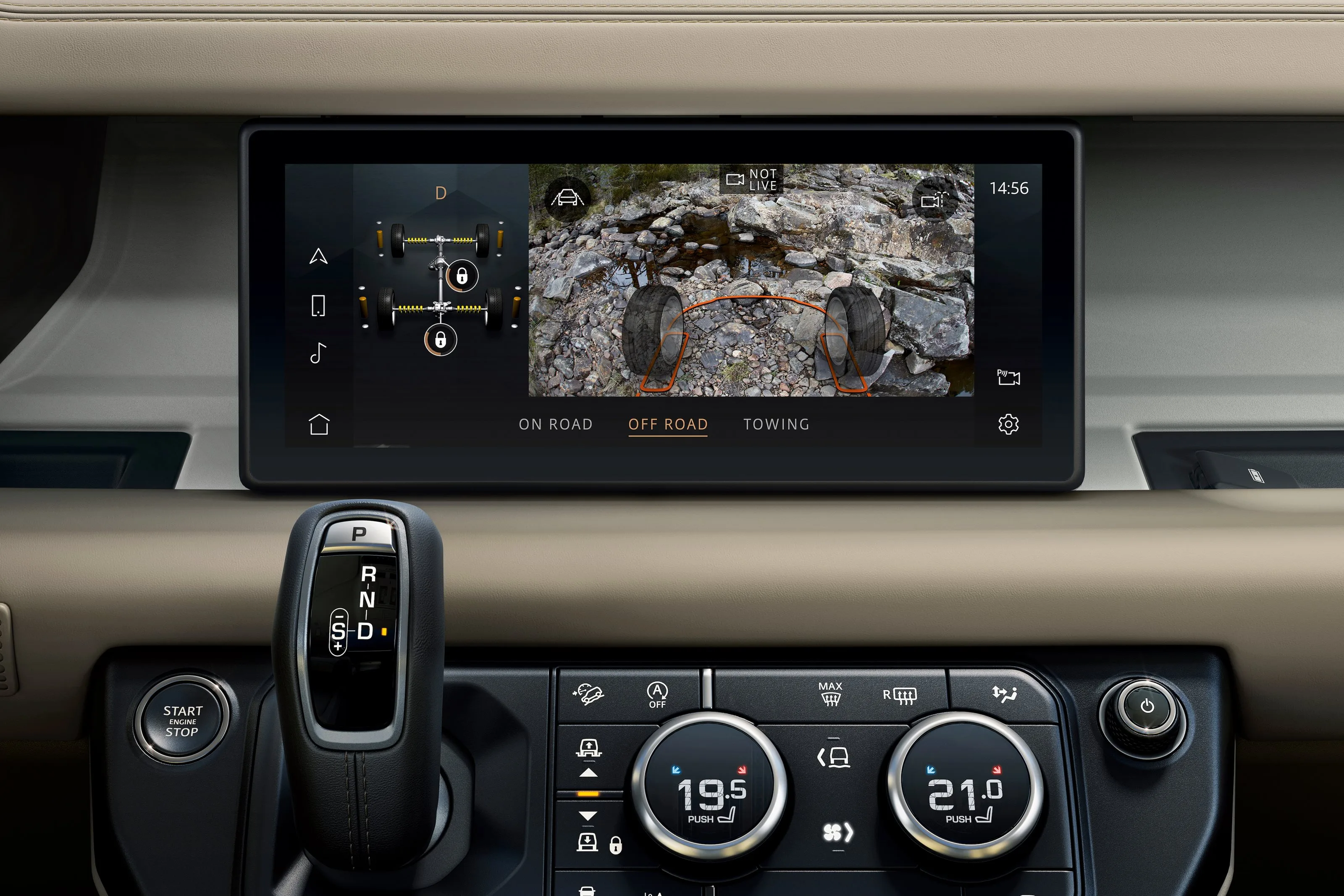 Apple CarPlay and over-air updates make Defender feel up-to-date. Pivo Pro is easy to use, even while on the go. We loved the digital dashboard and the good quality reversing camera. The addition of the $1274 ClearView system has a camera up on the shark fin, to display a real-time picture on the rearview mirror. With the system off, the spar mounted on the tailgate makes the view badly obstructed.