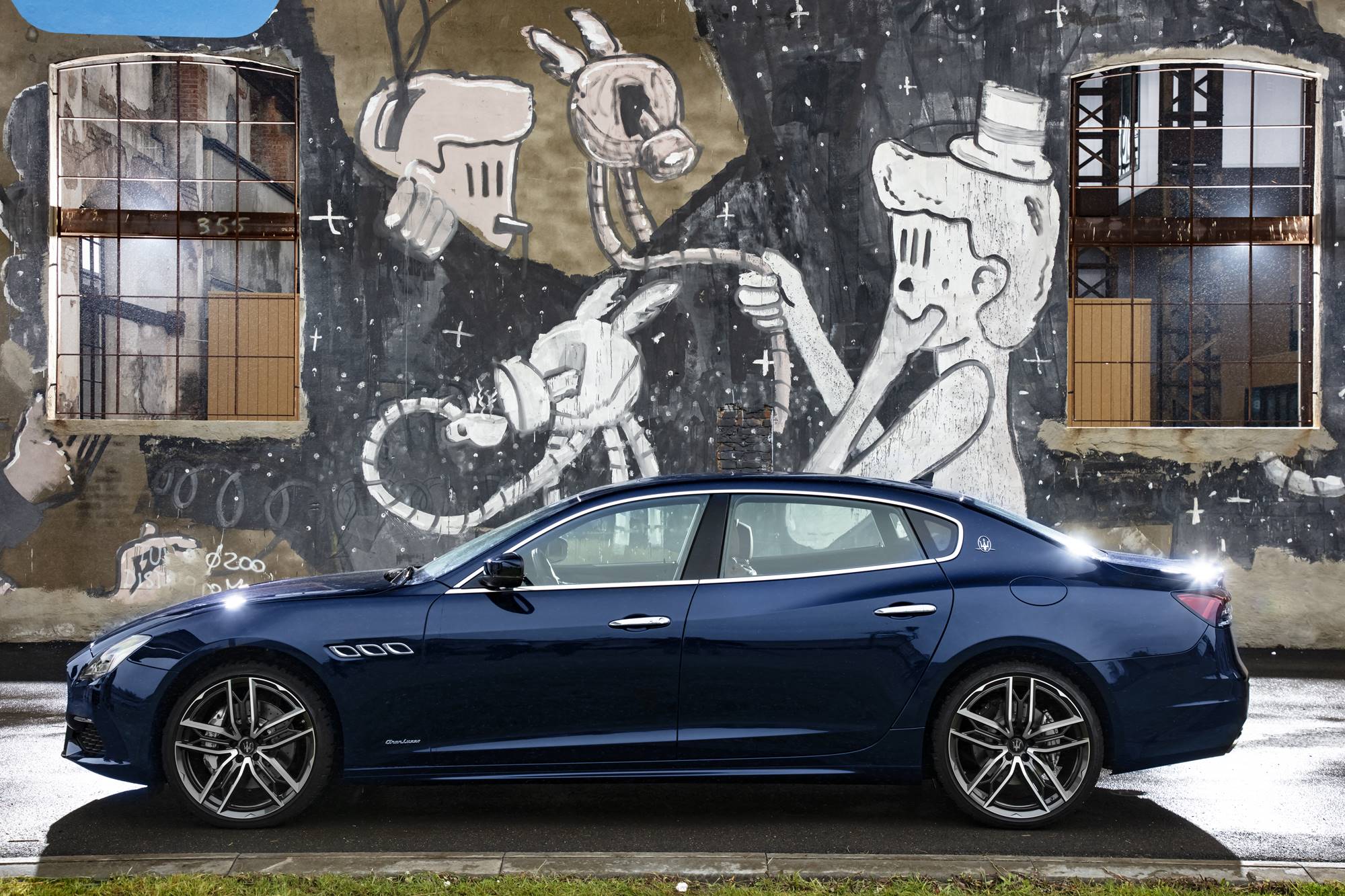 The GranLusso trim is identified on the exterior by a series of elegant chrome inserts in the front fascia, chrome front/rear skid plates, body colour rear spoiler, black-painted brake calipers, 19-inch Zefiro alloy wheels and GranLusso badges on the fenders.