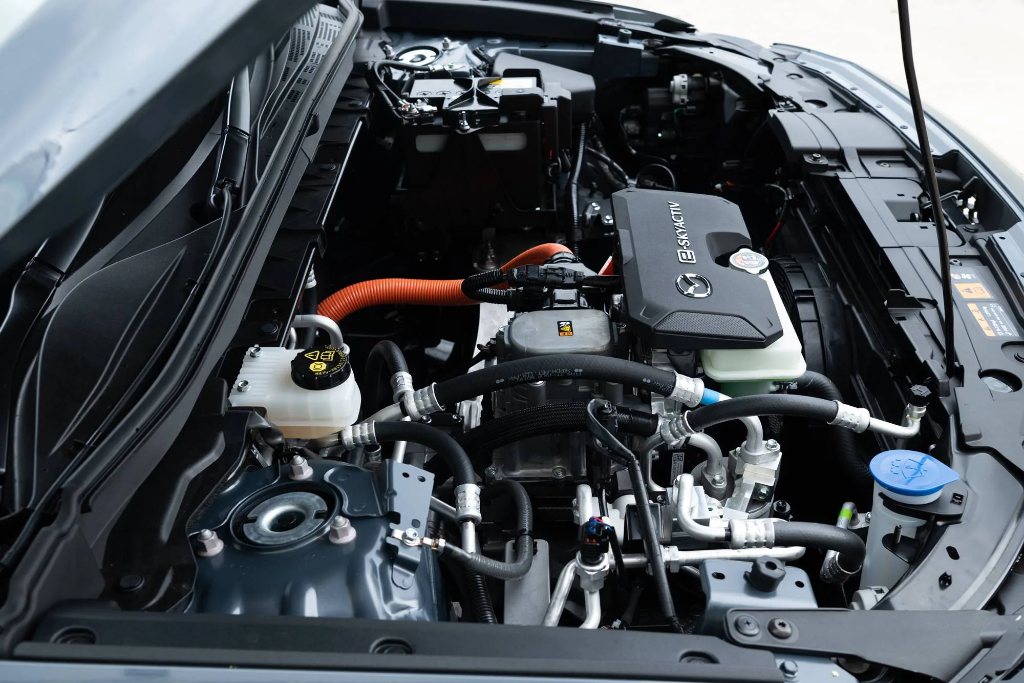 Although the EV system generates no discernible sound, Mazda’s e-Skyactiv provides aural driver feedback that enables subconscious recognition of the motor’s torque delivery. This is done via the audio system.