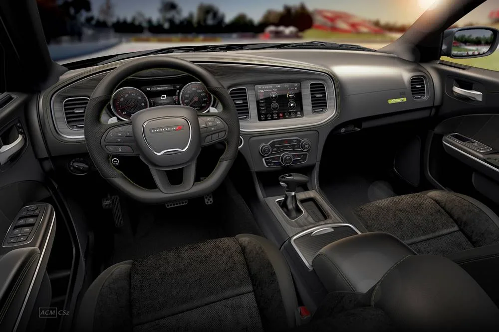 - Nappa/Alcantara seats with green stitching and green Dodge Rhombi logo