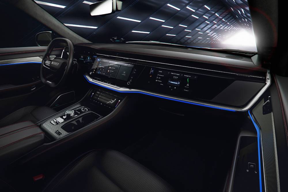 To the end, Waggoneer’s seven-slot grille no longer needs to cool, so now lights up at night, creating a new Jeep signature. Jeep Wagoneer S Launch Edition has dark accents, 20-inch Gloss Black wheels, and Gloss Black and dark neutral grey highlights. Sadly, there is no chrome, such is the modern trend.