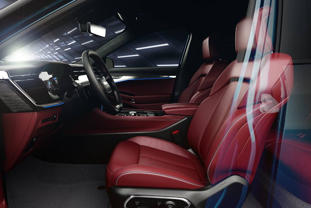 - Tech-integrated interior with 45 inches of usable screen space – best-in-class among EVs – with segment-exclusive interactive front passenger screen, premium heated and ventilated front and rear seats and segment-exclusive 19-speaker, 1,200-watt McIntosh audio system