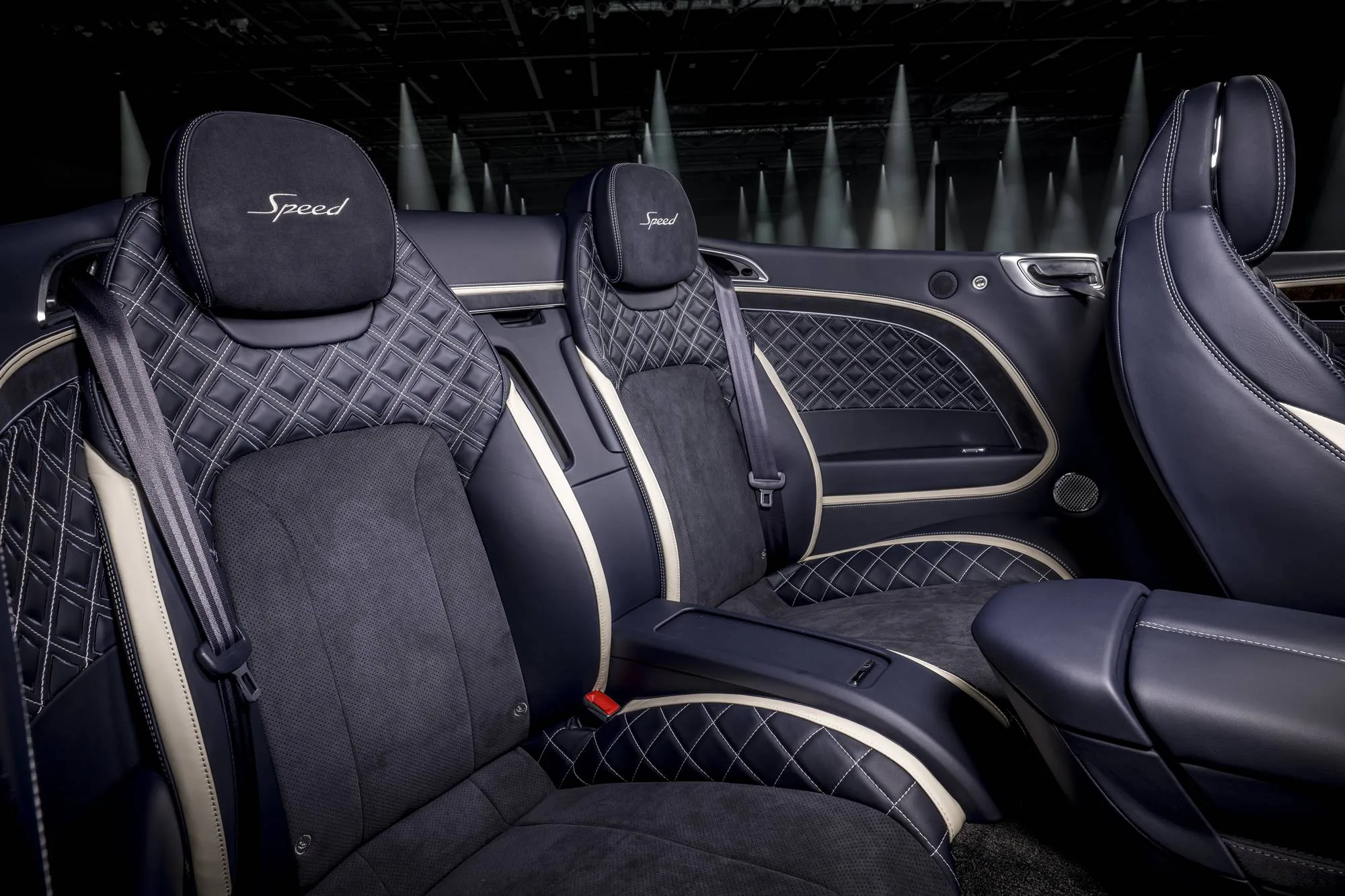 Diamond-in-diamond quilting and Speed embroidered headrests hint at the performance characteristics of the most potent Continental GT Convertible, while mono-tone color split with Alcantara/Leather is a no-cost option.