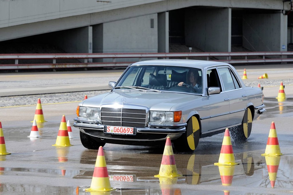 The examples range from the safety body in the 1959 “tailfin” (model series W 111) to the anti-lock braking system introduced in the S-Class (model series W 116) in 1978, the air bag (1981 premiere in the S-Class W/V 126 model series), and the Mercedes-Benz integral safety concept. This trend-setting concept was unveiled in 2005 in the S-Class (model series W/V 221) under the name PRO-SAFE™. The integral safety concept also includes the PRE-SAFE® preventive safety system, which was introduced in the S-Class W/V 220 model series in 2002.
