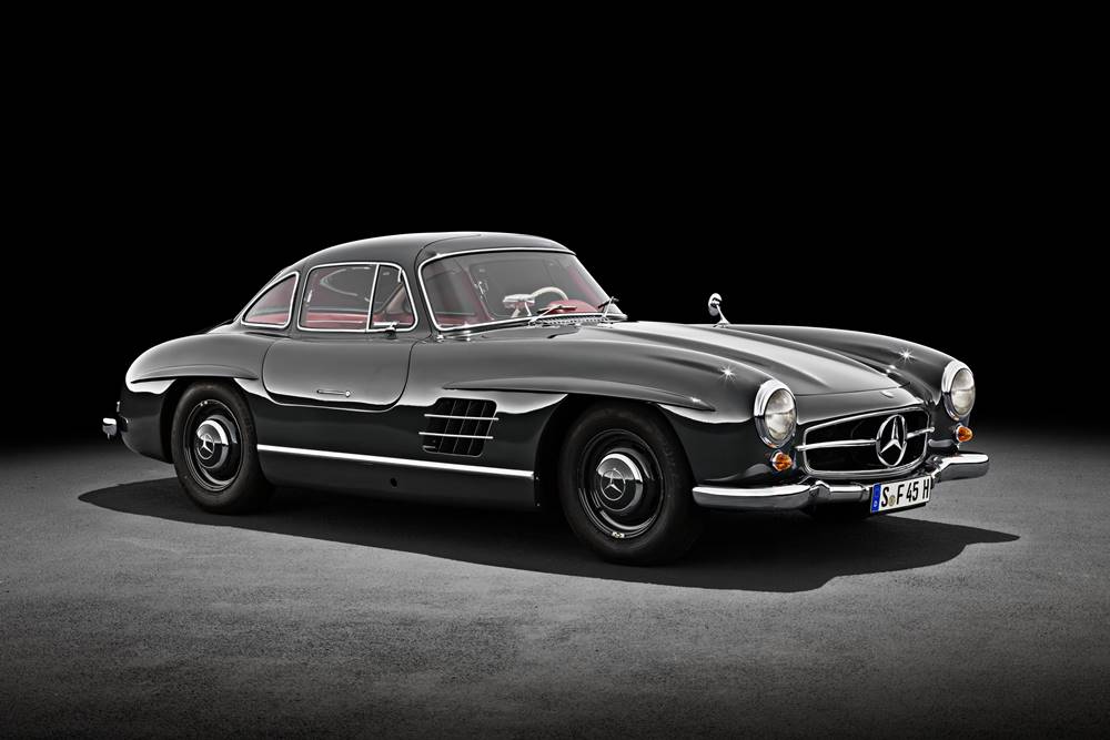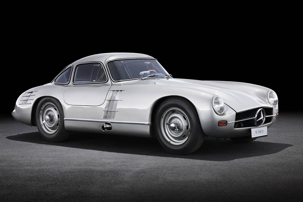 W194: The 190 SL had spun off from the 1952 300 SL racing car (W 194), with a 300 SL promised for the USA. Walter Häcker, Head of Mercedes- Benz Body Design, was to pen the body, while the Sindelfingen plant was awarded the task of designing the vehicle and model type of the 300 SL. The body came as a 300 SL Coupe (W 198) and the open-top 190 SL (W 121)