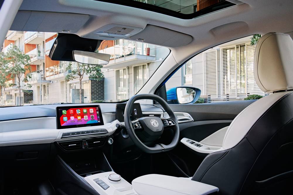 The quality strikes that pose, the one that is somewhere between smug and satisfied. The neat cabin has a small driver screen and larger infotainment touch screen. The sound is adequate and the interface is faster than the MG 4 we drove the week before.
