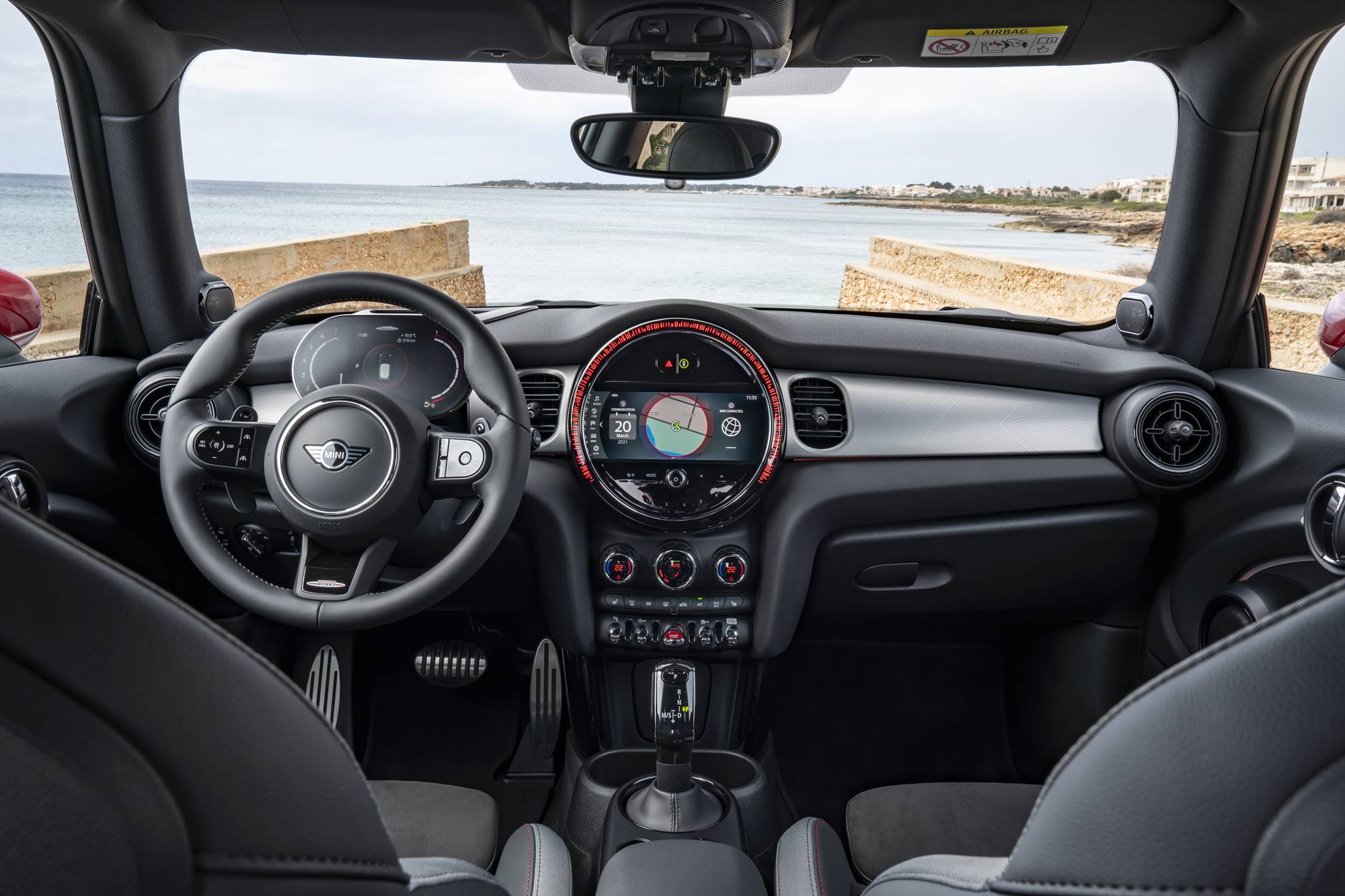 The new MINI John Cooper Works Hatch now also features a redesigned centre instrument with an 8.8-inch touch display in black panel design as standard, as well as a new operating system with a modern graphic display that makes the selection and control of vehicle functions, audio interface, navigation, communication and apps even more intuitive.
