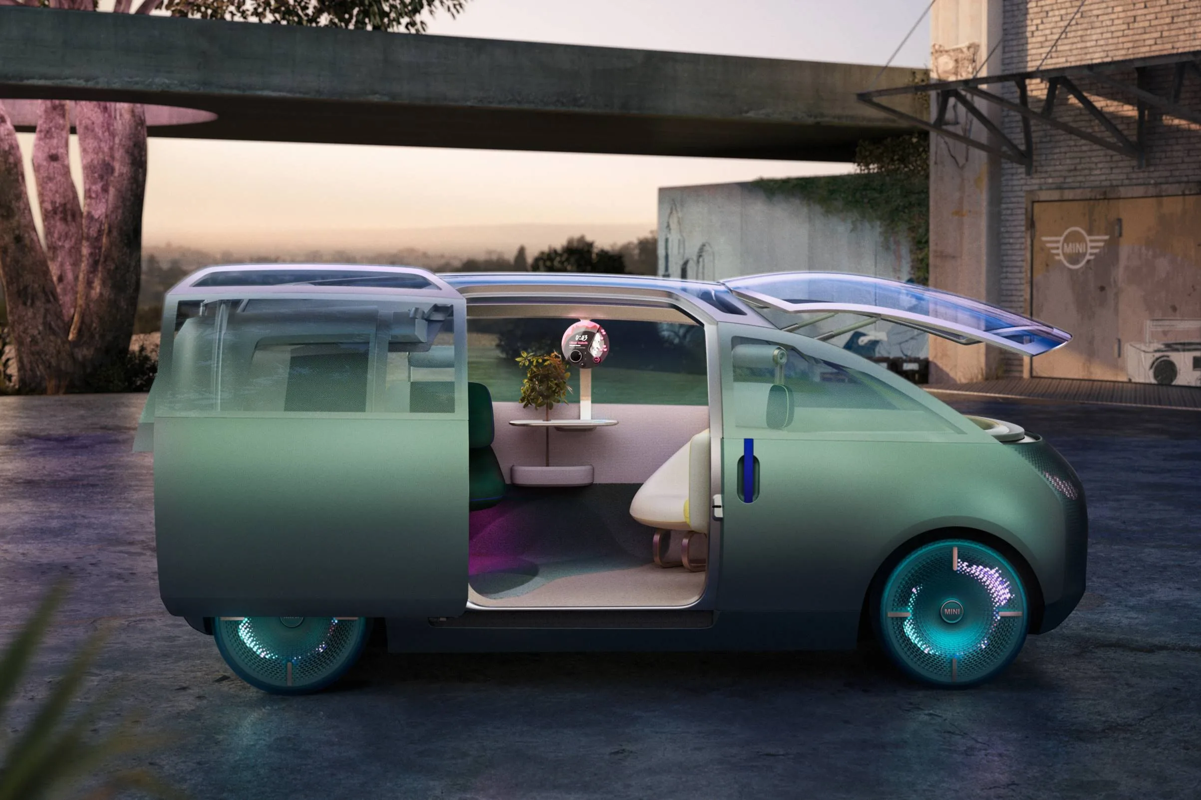 Wanderlust is activated when the MINI Vision Urbanaut is moving, inviting users to rediscover the romance of travel.