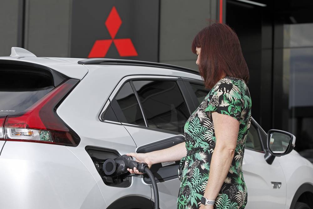 ABOVE: Outlander Plug-in Hybrid EV at Mitsubishi australia HQ bi-directional outlet