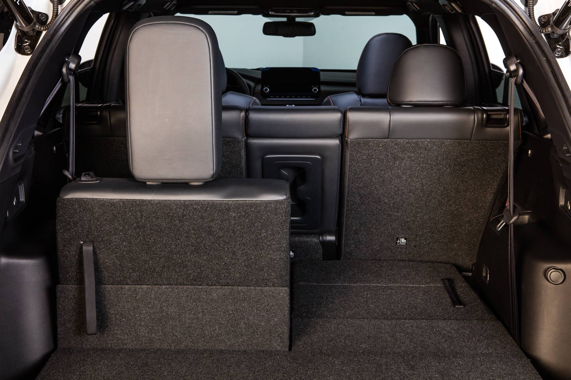 Space for storing smartphones is provided in the center console tray, center console side pockets, driver’s seat back pocket, and quarter trim pockets. The center console tray also has a wireless phone charging function (15W) that charges smartphones when placed on it. USB charging ports Types C and A are provided, respectively, on the front and back of the center console.