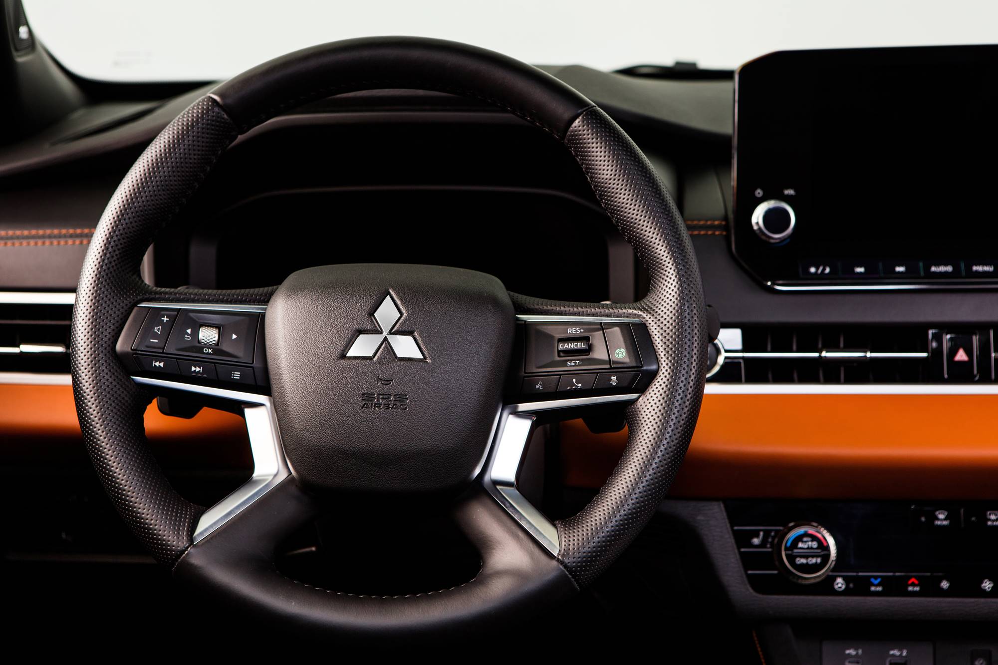 There are two types of meters depending on the trim level. The 12.3-inch full digital driver display equipped with a Mitsubishi Motors’ first full-screen, full-colour liquid crystal display shows a variety of contents on a large screen with clarity without appearing cluttered. The display is also equipped with a customization function that allows a variety of information to be freely combined and displayed. Another high-contrast meter with a 7-inch multi-information display can show simple arrow navigation in the central information display. It utilizes the high recognition advantage of an analog display while producing a high-quality look with a stereoscopic dial and decorated indicator needle.