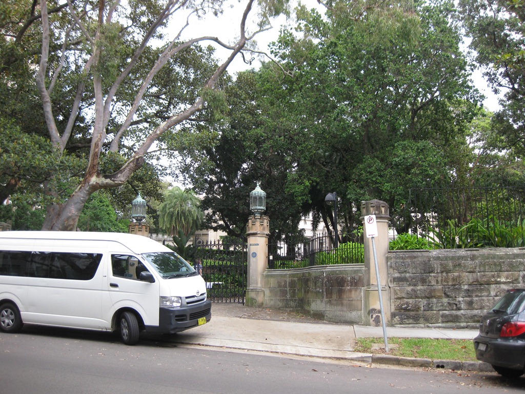 The day started at the impressive front gate. The house rests on the top of a hill overlooking Sydney Harbour. The view is not what it once was with houses and tall units blocks being built all round. There are still glimpses but frankly with a house like this would you ever be looking at the water.