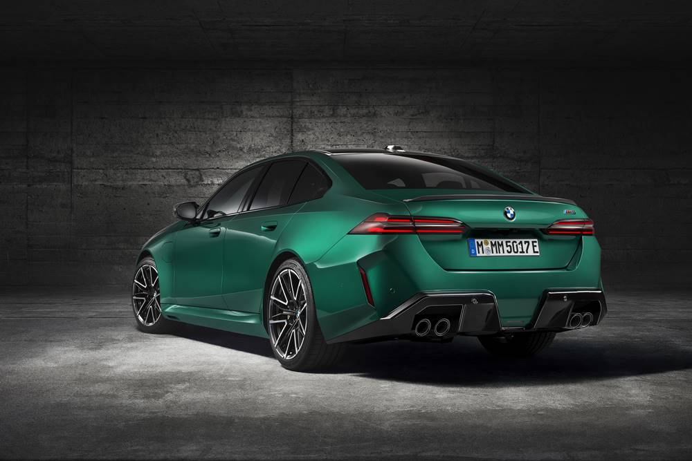 New BMW M5 includes prominent wheel arch and side skirt extensions, a sculptural front apron, and unique surfacing around the C-pillar, complete with an embossed ‘M5’ logo on the Hofmeister kink. Finishing the exterior are flashy 20-inch front and 21-inch rear M light alloy wheels.