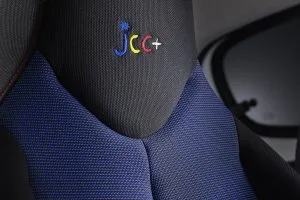 The “JCC+” logo is embroidered on the front seats and the “JCC x chevrons” motif is used on the floor mats.