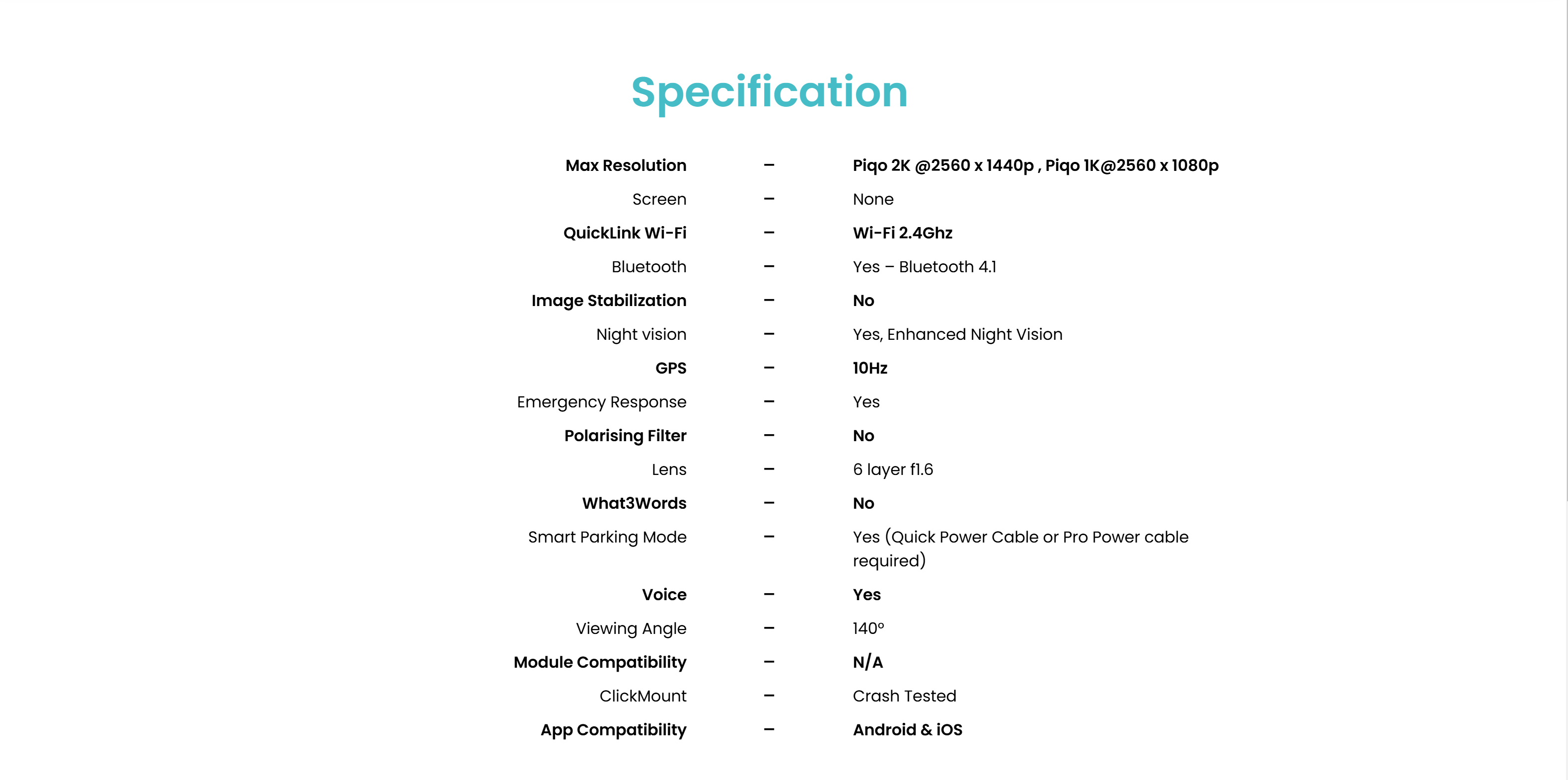 ABOVE: 2025 Nextbase Piqo 2K dashcam and Specifications