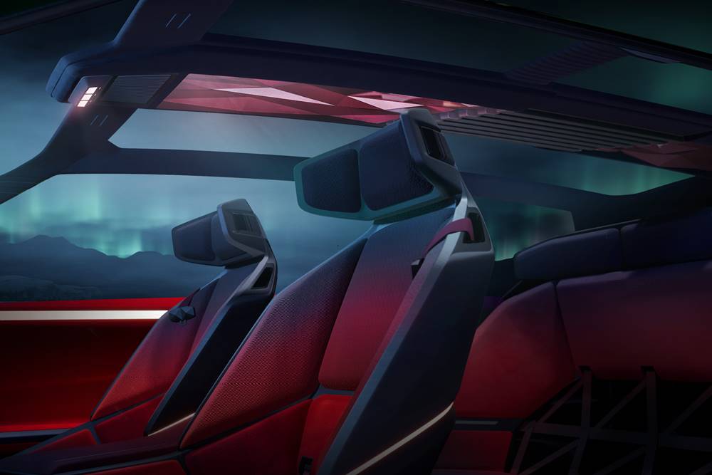 The interior is as smooth and sexy as the exterior. The driver’s instrument panel connects to the bottom of the windshield, serving as a screen with a wide field of view making the body appear transparent.
