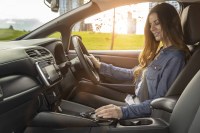 The steering wheel adjusts for tilt and reach, and the rear seats fold 60/40 to give a reasonably flat floor. Cargo space then increases from 405L to 1176L. Leaf has 142mm of headroom in the front, and 140mm in the rear for slightly shorter passengers.