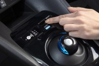 EVs have no gears as such, so the blue-highlighted knob moves right, then to D or R. Once forward or reverse is chosen, the knob flicks back to centre. PARK is a single button mounted on top. It is easy to use, once you work out how it moves.