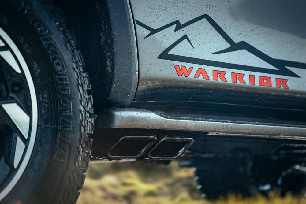 The Warrior treatment extends to an extra 50mm of ground clearance (total height = 1990mm), the afore-mentioned extra bash plates, strong extraction points, fancy wheels, off-road tyres, and some interior “refinements”. Inside, Warrior upgrades include the infotainment system which adds trails to the navigation system. The system takes a long time to initiate and is almost as slow as the new head unit found in the 2024 Patrol Ti-L.