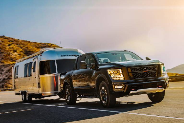 Engine is ta stonking5.6-liter Endurance® V8 gasoline engine, rated best-in-class at 400 horsepower (excluding EVs)5, along with 413 lb-ft of torque. Titan’s transmission is a 9-speed automatic for relaxed touring and easy city handling. If this doesn’t satisfy your need for size, then nothing will.