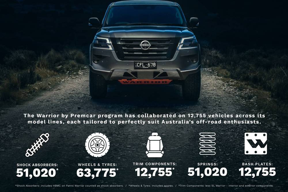 Over 12,755 Warrior vehicles have been reimagined by Premcar’s team of engineering wizards at their Epping, Victoria facility, each one loaded with serious upgrades for true-blue off-roaders. We’re talking 63,775 wheels and tyres, 51,020 springs and shock absorbers, and 12,755 bash plates bolted on with Aussie pride. That’s enough hardware to make even Mad Max blush.